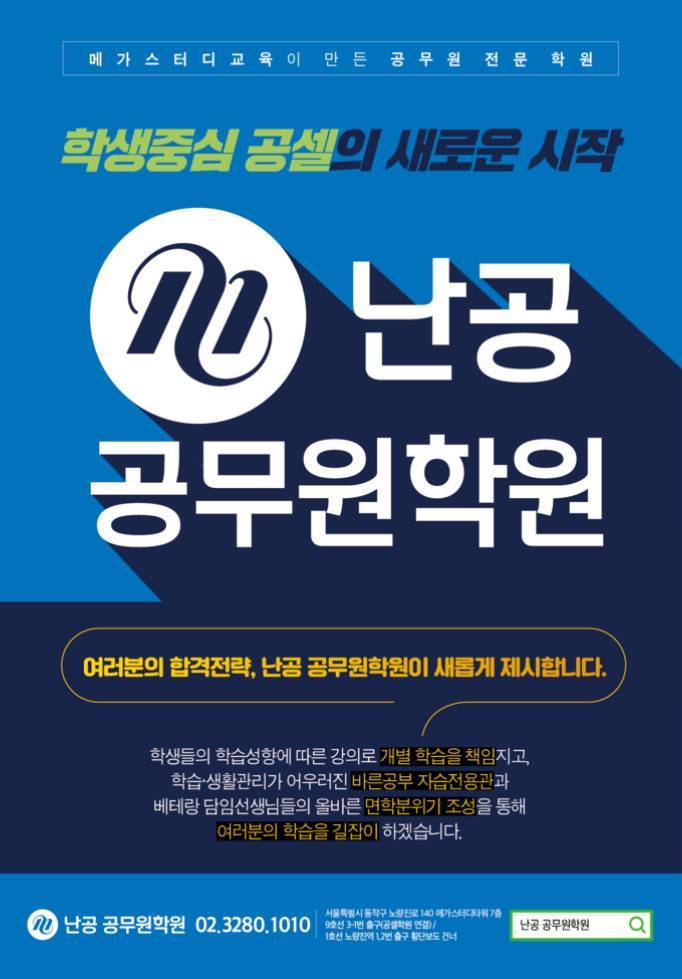 주소: 대한민국 서울특별시 동작구 노량진로 140 난공공무원학원.